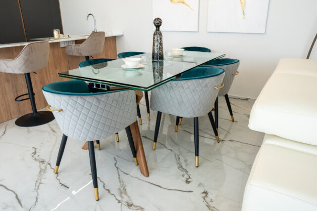 Bungalowy: Jednostki na parterze z prywatnymi ogrodami lub opcje na najwyższym piętrze z solarium. Wszystkie bungalowy obejmują dwie sypialnie, dwie łazienki, miejsce parkingowe i pomieszczenie gospodarcze, położone wokół centralnego obszaru wspólnego z basenem i ogrodami krajobrazowymi.