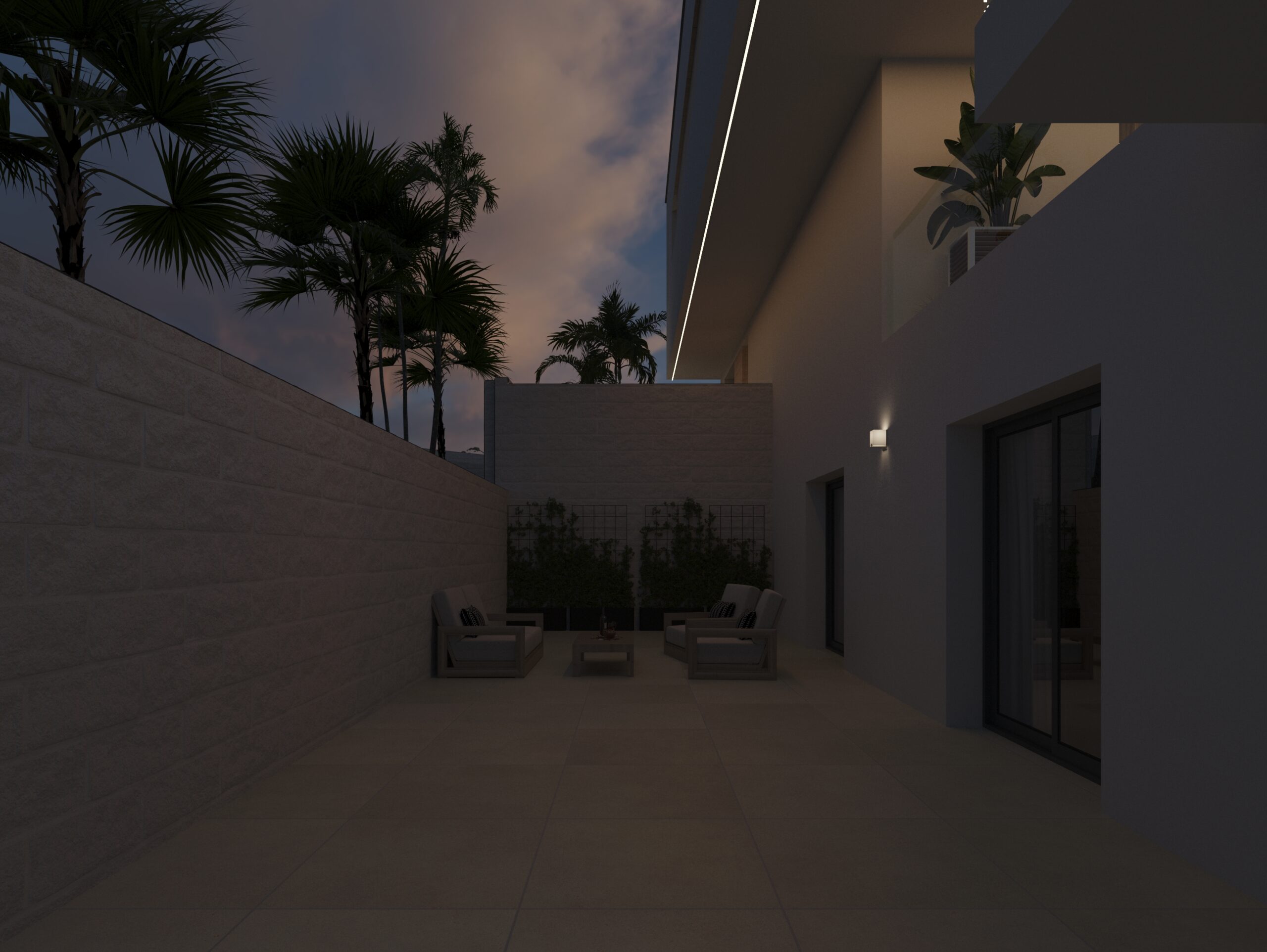 Piętro z dwiema sypialniami z łazienkami, każda z dostępem do prywatnych tarasów.