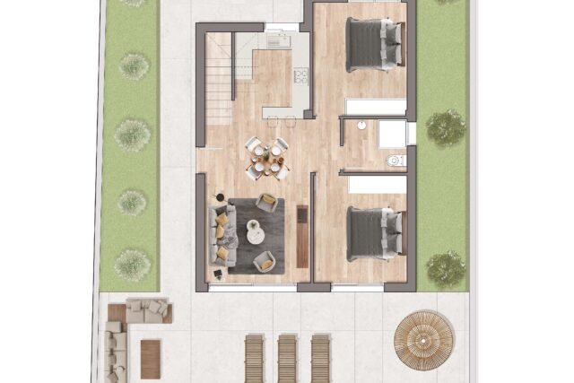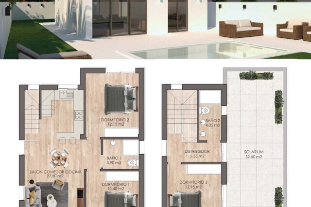 - Basen prywatny o wymiarach 9×3 m – opcja dodatkowa w cenie 19 900 EUR